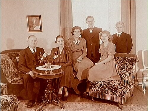 Rumsinteriör, familjegrupp sex personer.
