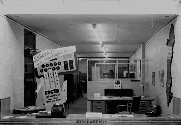 Åtvidabergs, skyltfönster, skrivmaskiner.