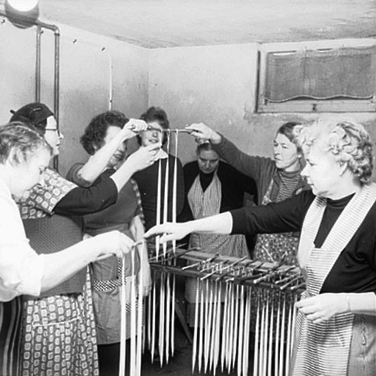 Ljusstöpning, interiör, kvinnor och barn.
