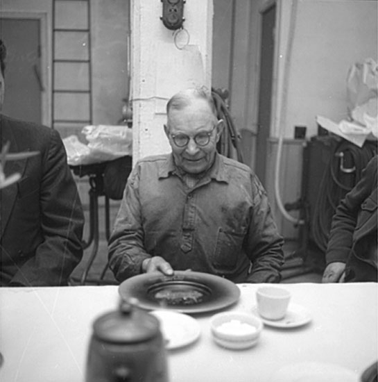 Mekaniska verkstaden i Ställdalen, interiör, avskedsfest för Folke-Elov Gustavsson.