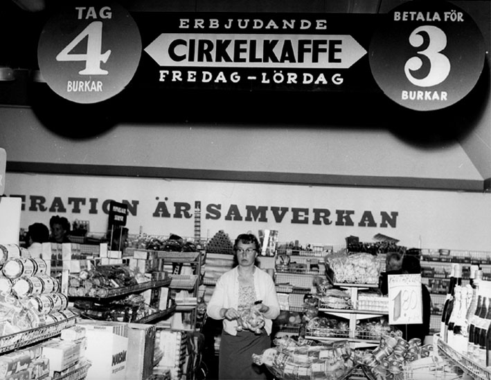 Konsum, affärsinteriör med kunder.