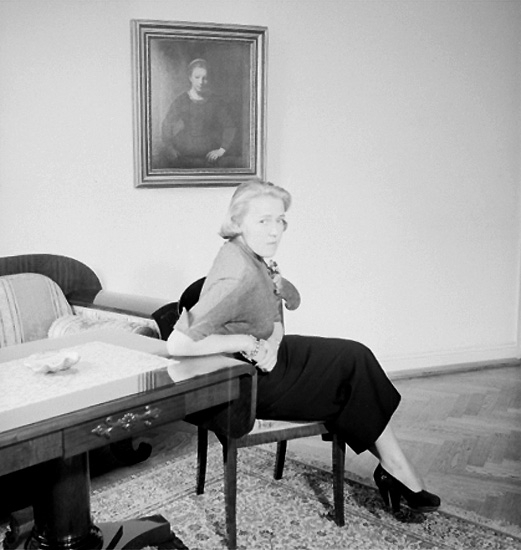 Rumsinteriör, en sittande kvinna.