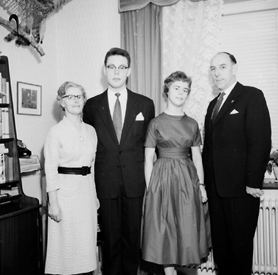Rumsinteriör, familjegrupp fyra personer.