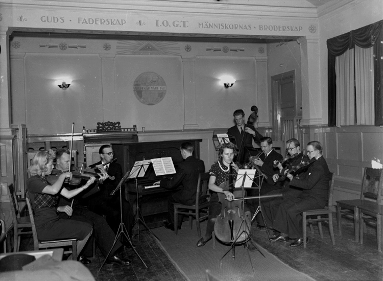 I.O.G.T.s musikcirkel, nio personer med musikinstrument.