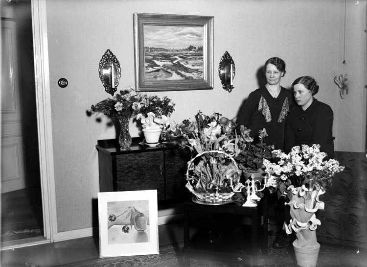 Rumsinteriör, två kvinnor.