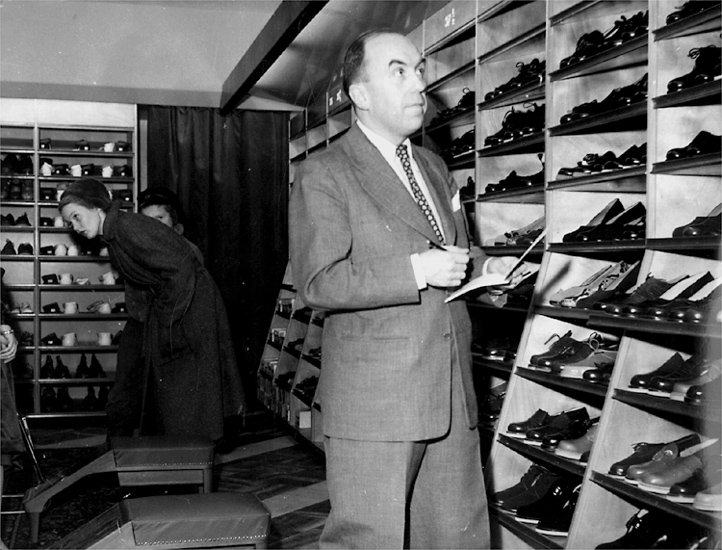 Konsum varuhuset, affärsinteriör, skoavdelningen, kunder och personal.