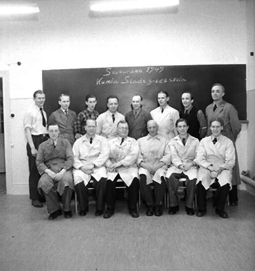 Titel: Grupp 14 män. Skoyrkesskolan, skokursen, Kumla Stads Yrkesskola.
