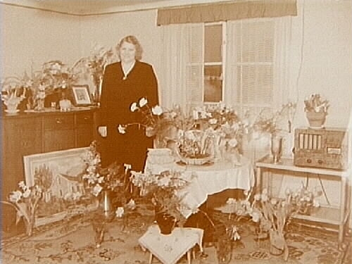 Rumsinteriör, en kvinna på 50 årsdagen.