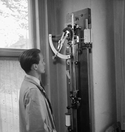 Lindmark & Nilssons metrevsfabrik, interiör, en man.
