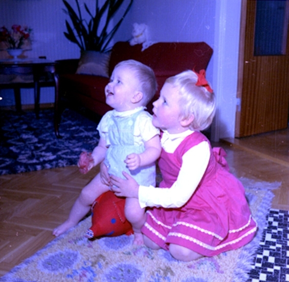 Titel: Rumsinteriör, två barn. Bertil Larsson