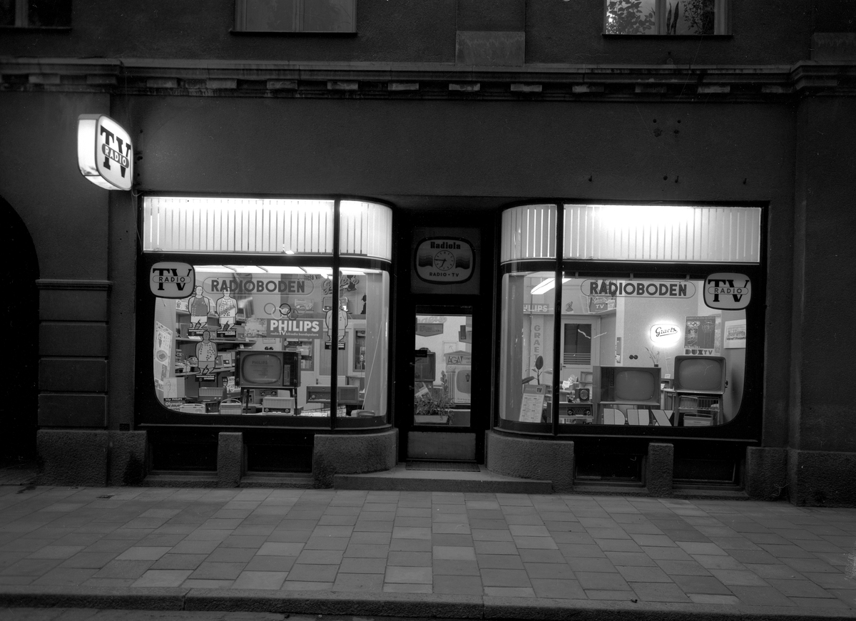 TV-Radioboden, affärsbyggnad, skyltfönster.