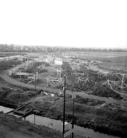 Titel: Byggnadsarbete, 3:e etappen. Bilden tagen i samband med en särskild dokumentation som fotografen gjorde åt Stiftelsen Hyresbostäder Örebro.