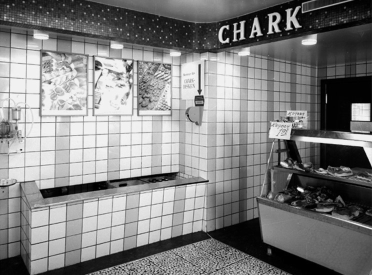 Affärsinteriör, charkuteriavdelningen, kyldisk.