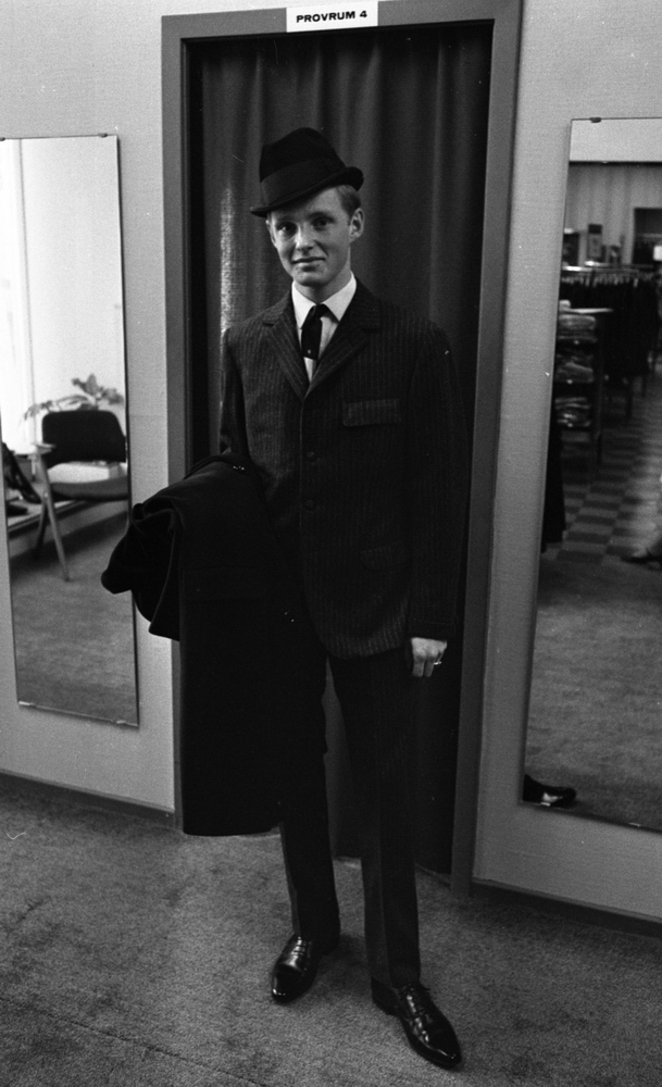 Höstens herrmode visas hos Bengt Nordins herrmode av Thomas Persson. I år skall det vara en blandning av amerikansk gangster och engelsk gentleman. Nya detaljer är slag på ärmen och 4 knappar istället för 3 på ärmen.