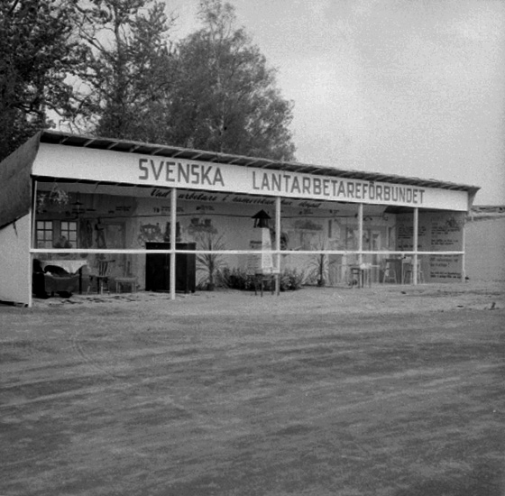 Titel: Svenska Lantarbetareförbundets monter på Lantbruksutställningen i Örebro den 19 juni 1953.