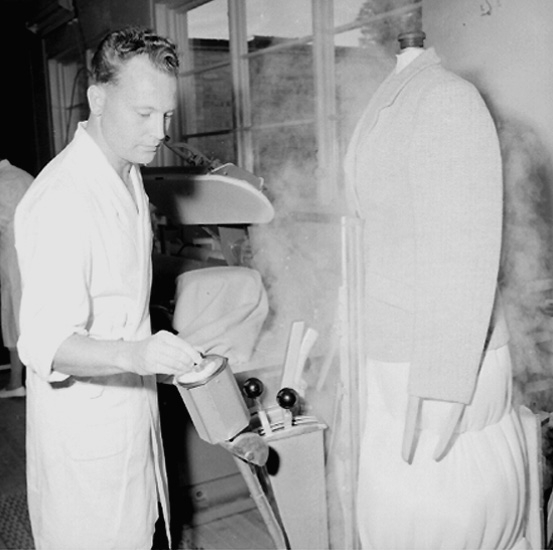 Titel: Bergeå Kemiska, kemtvätt, interiör, en man.