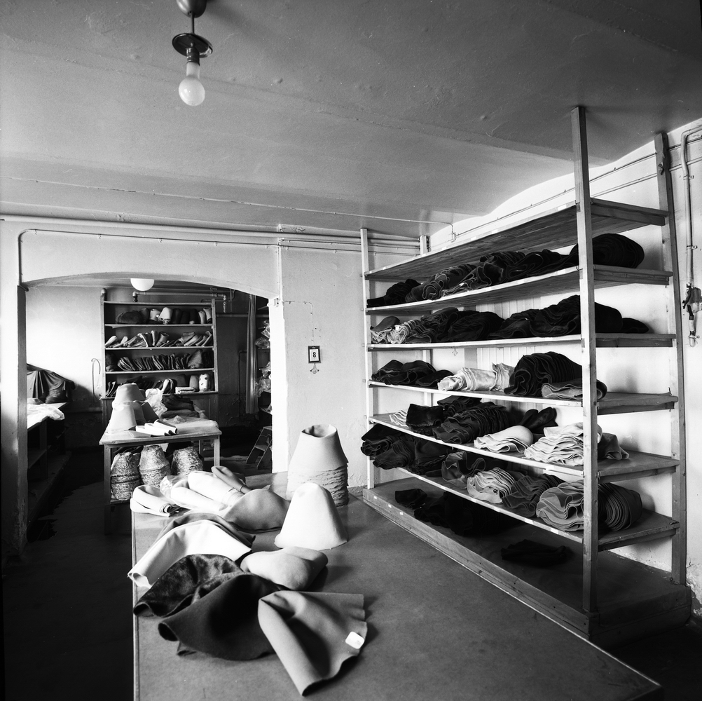 Lindbergs Strå- och Filth. Hattillverkning. 221/67 Stumparna på hyllor i lagerrummet.