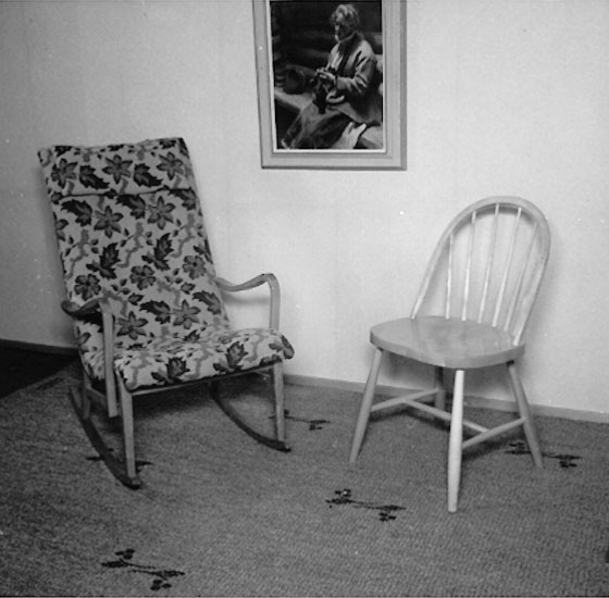 Konsum Möbler, affärsinteriör, en fåtölj.