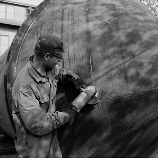 Gustafsson & Görtz, verkstadsinteriör, svetsning, en man.