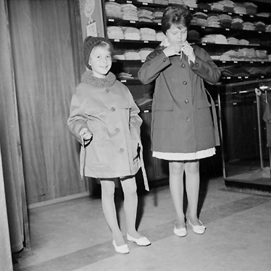 Konsum Damkonfektion, affärsinteriör, två flickor.