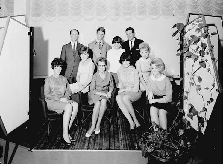 Krämarens Herr- och Damfrisering, interiör, personalen sju kvinnor och tre män.