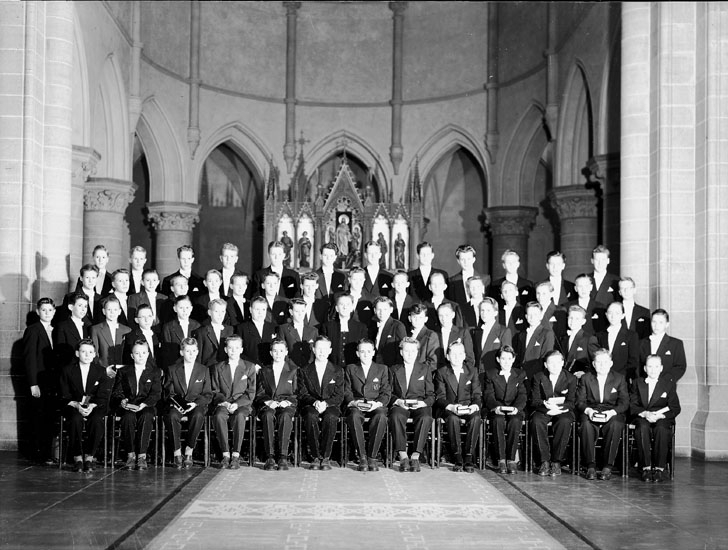 Konfirmander, 57 pojkar och prosten Erik Esking.