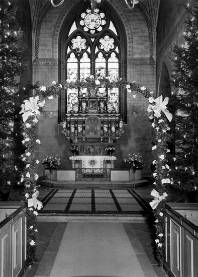 Interiör av Nikolaikyrkan, dekorerad för bröllop.