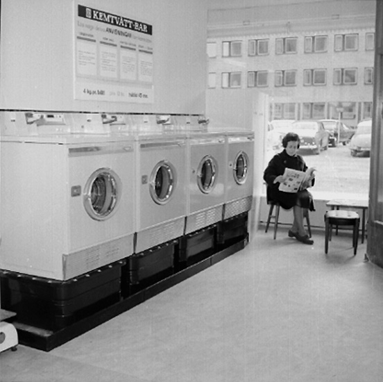 Konsum, Kemtvätt-bar, interiör, en kvinna.