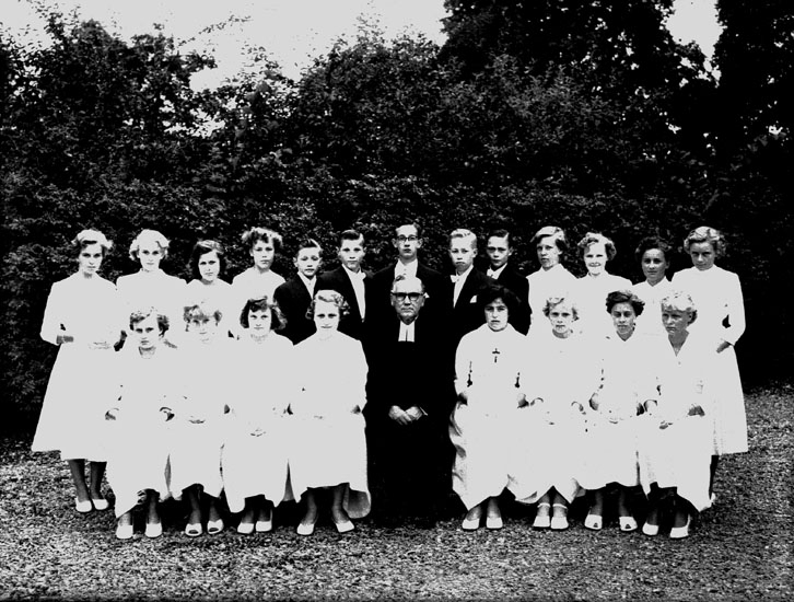 Konfirmander, 16 flickor, 15 pojkar och kyrkoherde Gunnar Johansson.