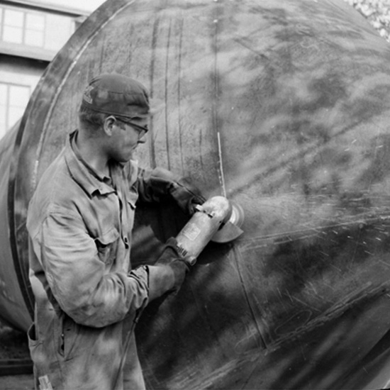 Gustafsson & Görtz, verkstadsinteriör, svetsning, en man.