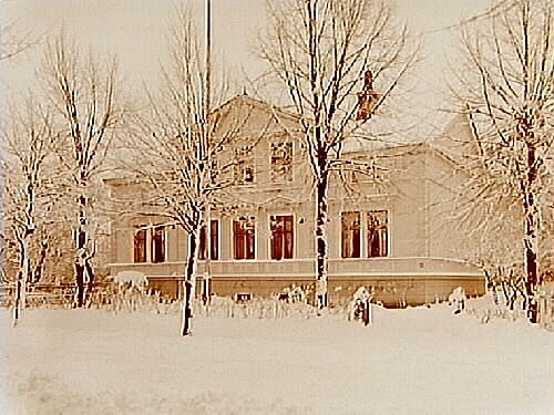 Trähus i envåning och mittrisalit i två våningar. Huset i grå puts och klassicerande dekor som hörnkedjor, fönsteromfattningar i form av lisener med profilerade överstycken.