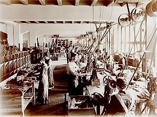 Skofabriken Engelbrekt, interiör från stansavdelningen, första våningen.