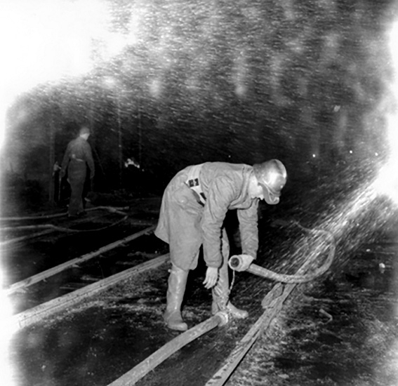 Brandsläckning, branden i pappersmagasinet i Ställdalen (februari 1956).