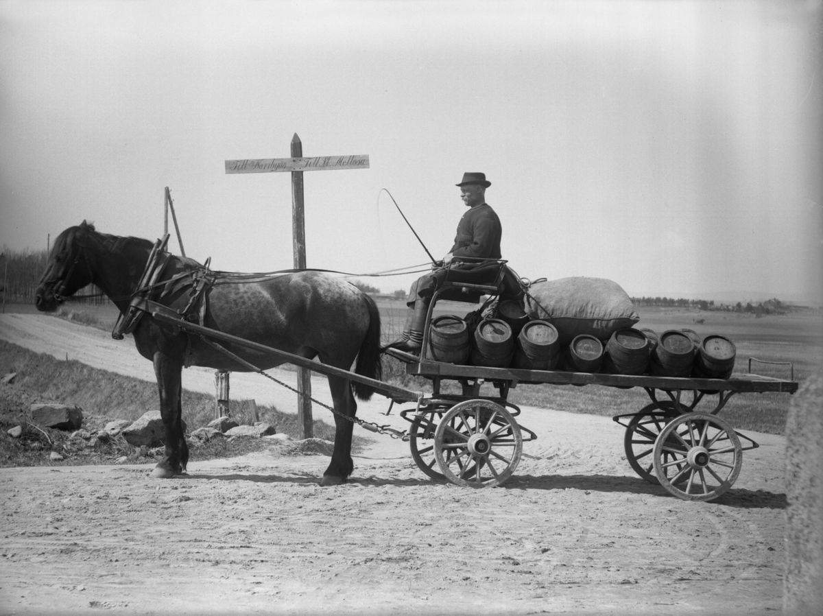 Drickutkörare med häst. Mellan Norrbyås och Mellösa.