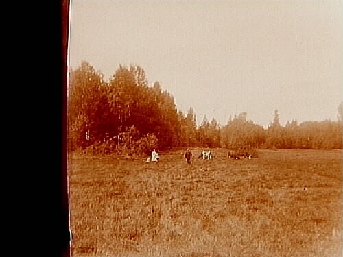 Titel: Familjebild, djur, personer. Två bilder (8x8 cm) på samma glasplåt (8x17 cm).