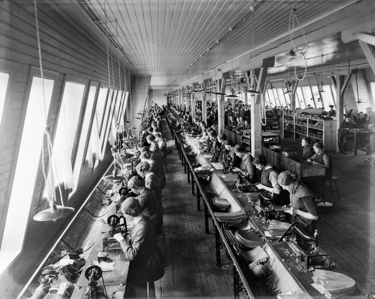 Nya Skofabriks AB Örnen, interiör från nåtlingsavdelningen.