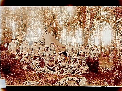 Landstormsofficerskursen, 20 landstormare vid tältet.