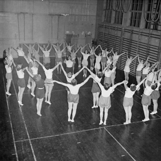 Kvällsgymnastik i Vasaskolans gymnastiksal.