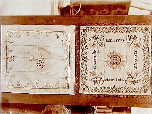 Två näsdukar. Näsduk med följande text: Margareta Charlotta Gyldenadler. Anno 1740.
