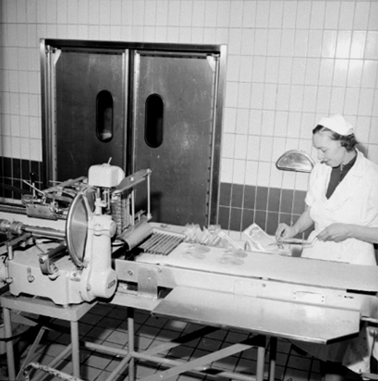 Konsum, charkuteriavdelningen, interiör, en kvinna.