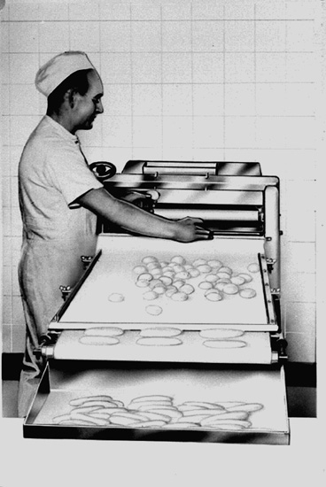 Bakning, bagerimaskin, en man.