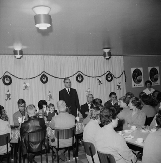 Avskedsfest för L.C. chefen Torsten Östergren, interiör, grupp.