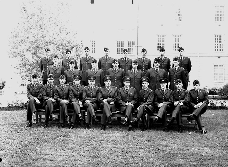 Kasernbyggnad i bakgrunden.