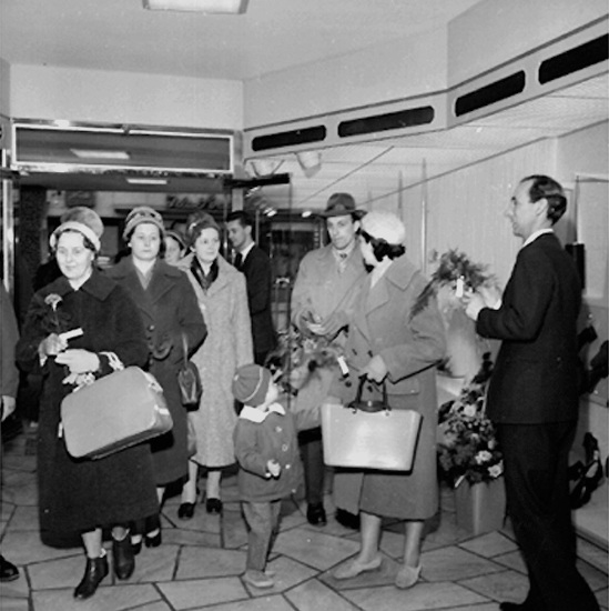 Titel: Oscarias nya affär, skoaffärsinteriör, kunder och personal.