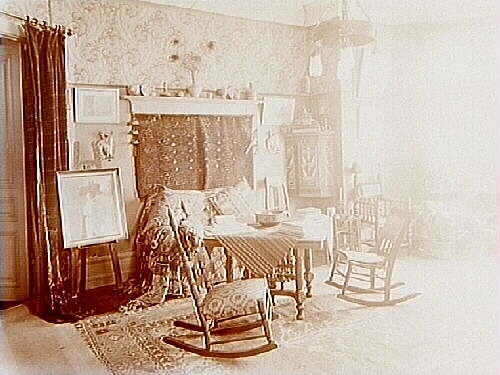 Titel: Rumsinteriör i jugendstil. Stadsarkitekt Magnus Dahlander. Huset ägdes av Dahlander. Tax tomt 10000, hus 34000. Tomt 553 m/2.