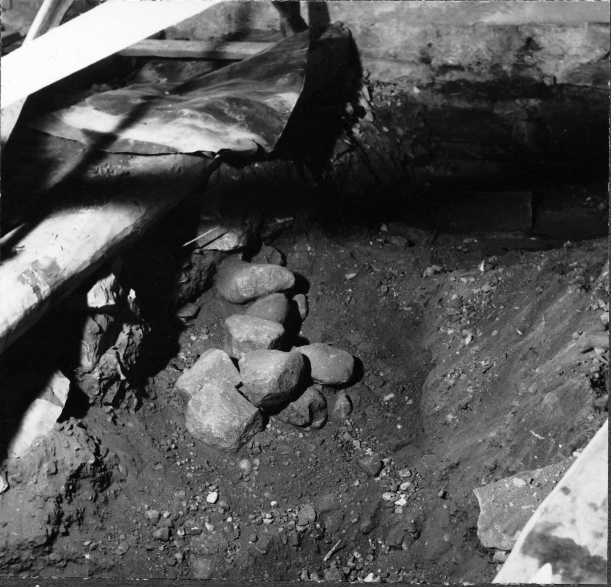 Stensträng i nordsydlig riktning, i koret. Undersökning, december år 1956.