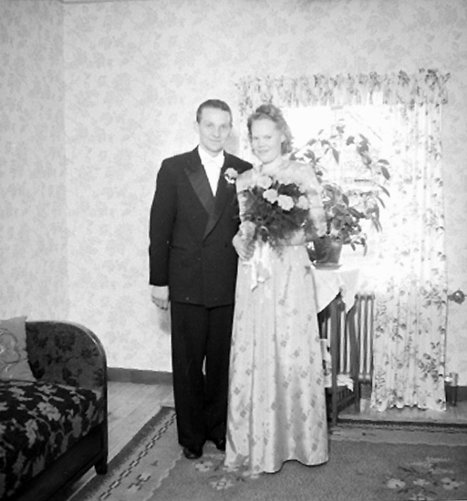 Rumsinteriör, bröllop, brudpar.