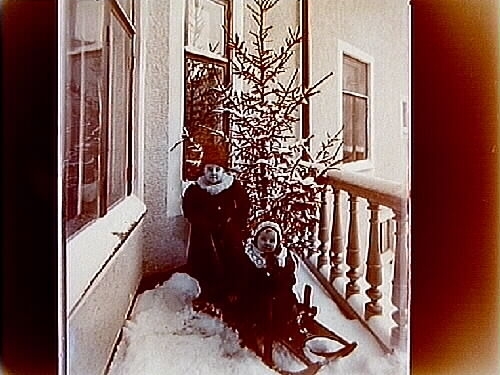 Två flickor, Märta Lindskog, 4 år och 3 månader, och Margit 10 månader, på balkongen.