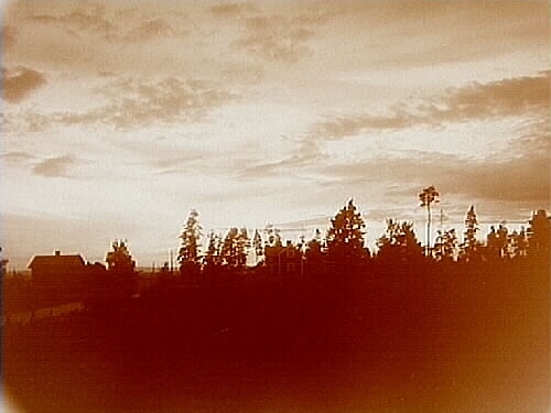 Utsikt från Brickebacken mot Örebro, solnedgång och aftonstämning.