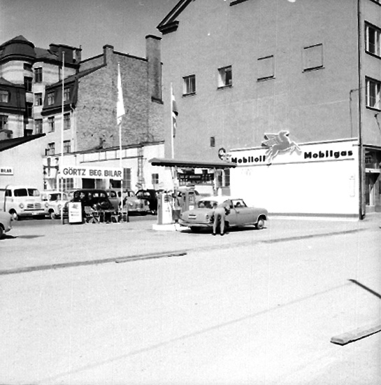 Bensinstation och byggnader.